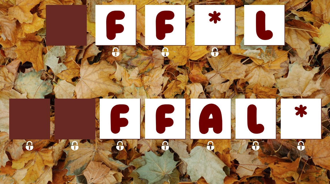 Drag cards to the play area below to spell "FALL", and they will disappear.. like the autumnal leaves of a tree.